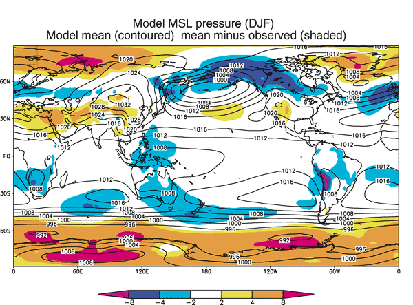 climatological precipitation in mm per day (top) and mean sea level pressure in