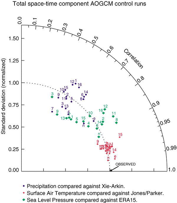 by CMIP2 model control runs. The radial co-ordinate gives the magnitude of total