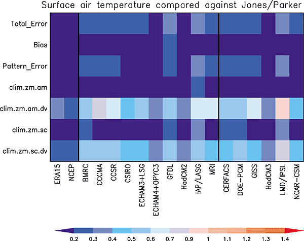 space-time errors of surface air temperature (climatological annual cycle) simulated