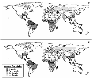 Classical epidemiological models of infectious disease use the basic reproduction rate, R0. This measure is defined as the number of new cases of a disease that will arise from one current case when introduced into a nonimmune host population during a single transmission cycle (Anderson and May, 1992). The basic reproduction rateor a related concept, "vectorial capacity"can provide a relative index of the impact of different climate scenarios on the transmissibility of vector-borne diseases such as malaria. Vectorial capacity, however, is determined by complex interactions of many host, vector, pathogen, and environmental factors. Some of the variables are sensitive to temperature, including mosquito density, feeding frequency, mosquito survival, and the extrinsic incubation period (EIP) of the parasite (plasmodium) in the mosquito (Martens et al., 1999). The EIP is especially important, and, within the lower temperature range, it is very temperature-sensitive.