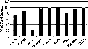 Associated with the poor hydrological performance of African river basins is the fact that most of the lakes in Africa have a delicate balance between precipitation and runoff; all of the large lakes show less than 10% runoff-to-precipitation ratio (Talling and Lemoalle, 1998), and important water basins like Lake Chad and the Okavango Delta have no outflow because evaporation and permiation balance runoff (see Figure 10-5).