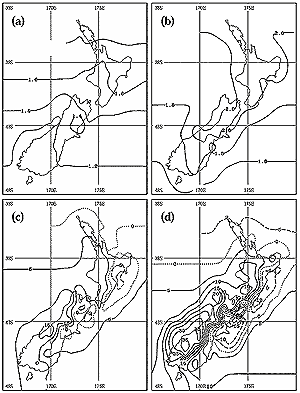 New Zealand scenarios reported in RICC (Basher et al., 1998) are based on statistical downscaling from equilibrium GCM runs with CO2 held constant at twice its present concentration. Renwick et al. (1998b, 2000) also have downscaled equilibrium GCM simulations over New Zealand, using a nested RCM.