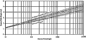 A study by McInnes et al. (2000; see also Walsh et al., 2000) estimates the height of storm tides at the city of Cairns, in northern Queensland, for the present climate and for an enhanced greenhouse climate in whichbased on the findings of Walsh and Ryan (2000)the central pressure of tropical cyclones was lowered by about 10 hPa and the standard deviation of central pressure (a measure of variability) was increased by 5 hPa but the numbers were unchanged. Cairns is a low-lying city and tourist center, with a population of about 100,000 that is growing at about 3% yr-1. Under present conditions, McInnes et al. (2000) found that the 1-in-100-year event is about 2.3 m in height; under the enhanced greenhouse conditions, it would increase to about 2.6 m, and with an additional 10- to 40-cm sea-level rise, the 1-in-100-year event would be about 2.7-3.0 m (see Figure 12-4). This would imply greatly increased inundation and wave damage in such an event, suggesting a possible need for changes in zoning, building regulations, and evacuation procedures.
