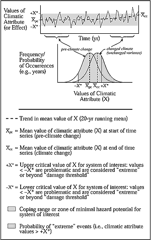 Figure 18-3: Climate change, variability, extremes, and coping range (after Hewitt and Burton, 1971; Fukui, 1979; Smit et al., 1999; and others). |
