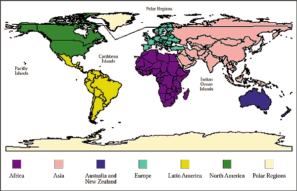 and Atlantic Oceans, and the Caribbean and Mediterranean Seas. The boundary between