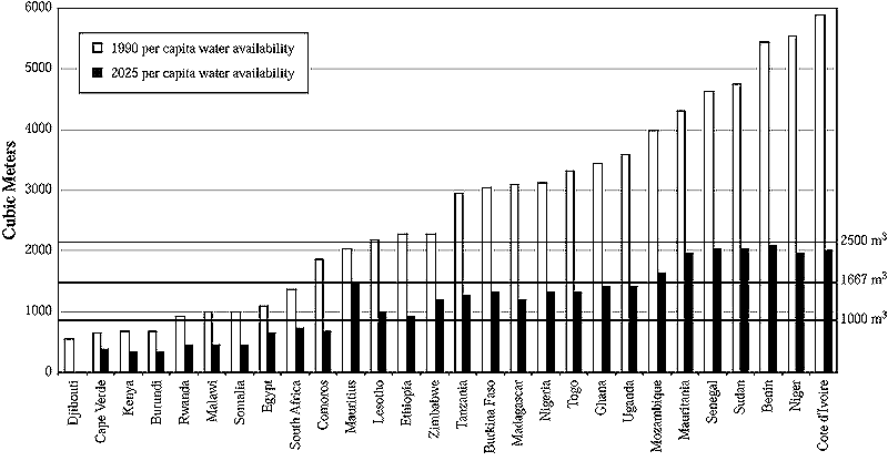 Water scarcity and people in Africa (Sharma et al., 1996).