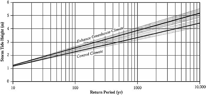 5 hPa standard deviation) of tropical cyclones. Anticipated mean sea-level rise