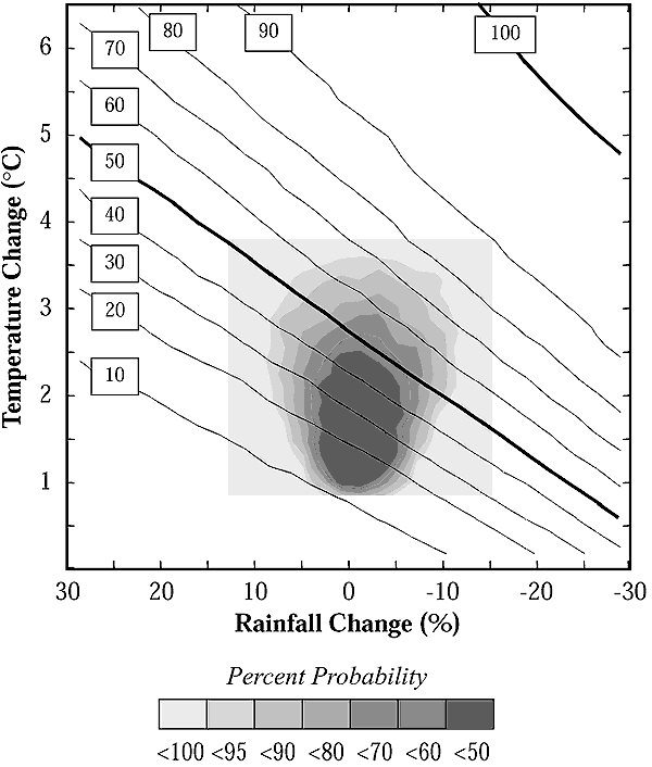 each shaded area (thus, there is a 100% probability of climate within the shaded