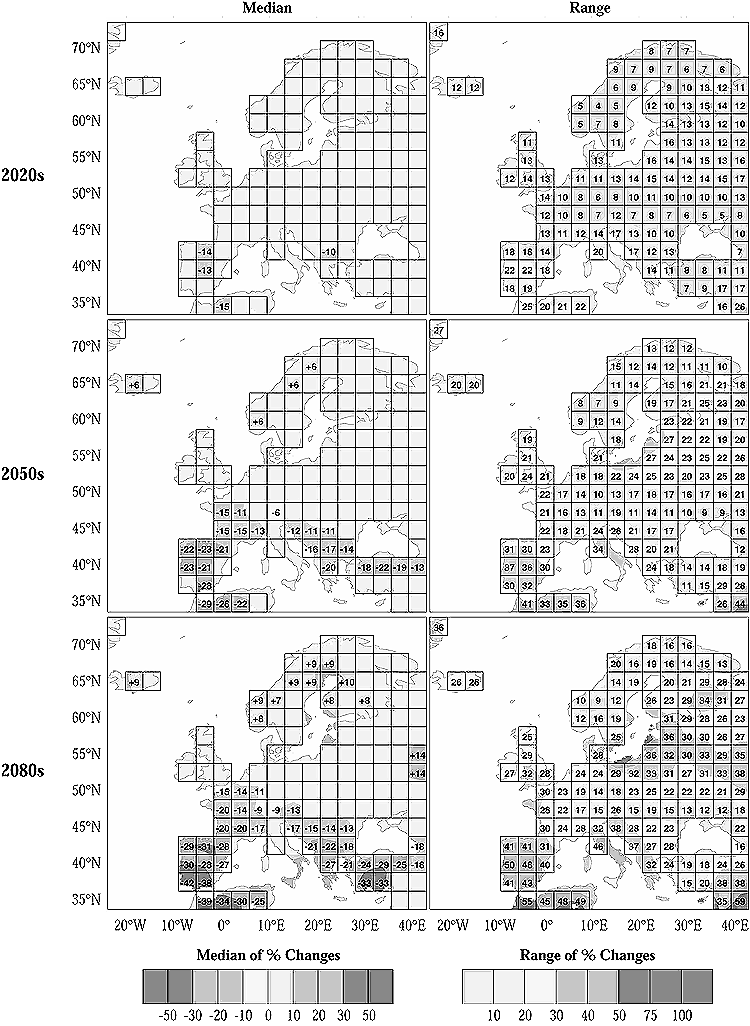 ACACIA B2 summer scenario maps (B2-mid, JJA) for precipitation.