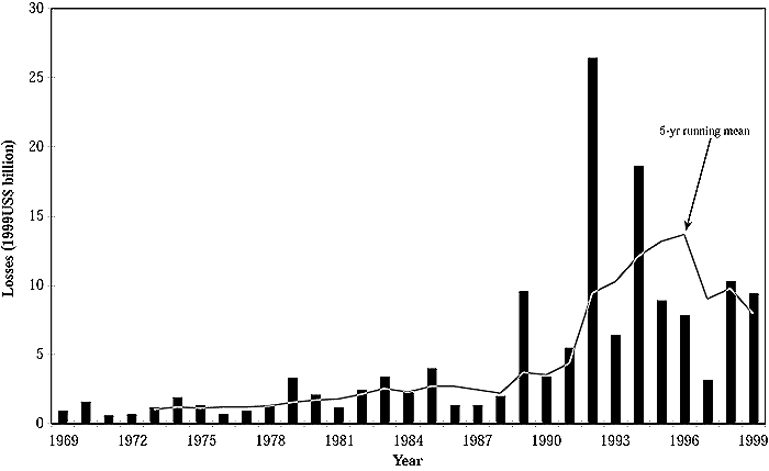 disaster losses have increased 10-fold in North America between 1969 and 1999