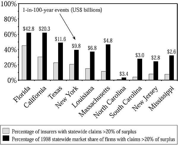 1-in-100-year loss for the entire United States is $155 billion). Capacity implied