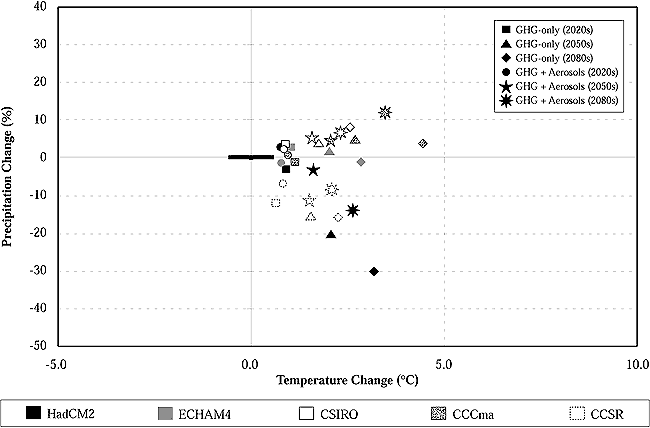 Climate change scenarios for Atlantic Ocean and Caribbean Sea islands as simulated by five AOGCMs for the 2020s, 2050s, and 2080s.