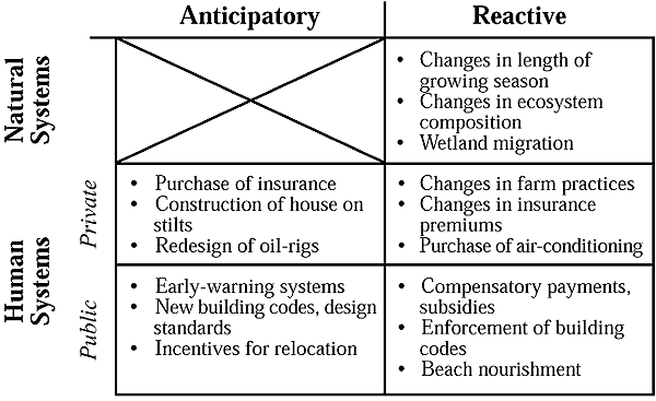 Types of adaptation to climate change, including examples (from Klein, 1999
