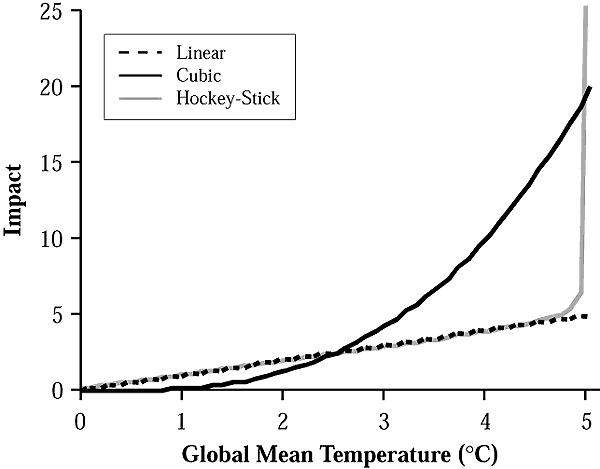a hockey-stick function, which assumes that impacts are approximately proportional