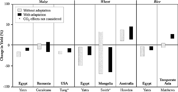 spanning selected climate change scenarioswith and without agronomic adaptationfrom