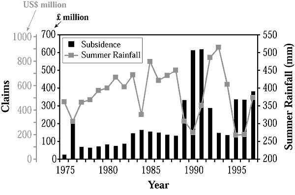 and subsidence claims in the UK: 1975-1997. Rainfall data are for England