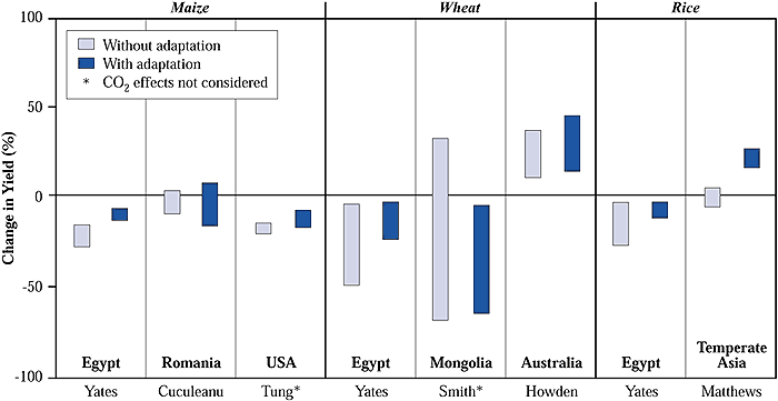 selected climate change scenarioswith and without agronomic adaptationfrom