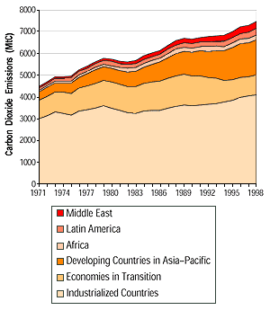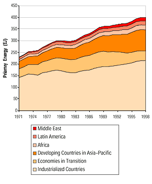 A number of new technologies and practices have gained importance since the Second Assessment Report (SAR). As a result, greater opportunities for energy efficiency are available, often at lower cost than was expected. Annual growth in global consumption of primary energy and related carbon dioxide emissions dropped to 1.3% and 1.4%, respectively, between 1990 and 1998 after experiencing much higher growth rates of 2.4% and 2.1% between 1971 and 1990. This decrease in growth rate is because of the combined effects of improved energy efficiency technologies, increased fuel switching and adoption of renewable energy sources, and the dramatic decrease in emissions of countries with economies in transition (EITs) as a result of economic changes (Figures 3.1 and 3.2).