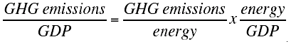 As noted, GHG emissions are interlinked with general economic development patterns and economic policies. These policies have an influence both on the baseline as well as on the effectiveness of the mitigation options, and thereby on GHG emission levels. It is useful to decompose the GHG emission/GDP intensity factor into subcomponents that explain the implicit resource components behind the GHG emissions. One way to achieve this for the energy sector is based on the so-called Kaya identity (Kaya, 1989):