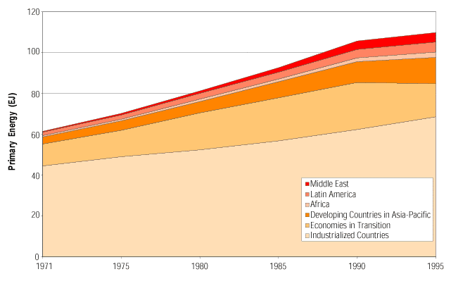 Primary energy use in the buildings sector, 1971-1995.