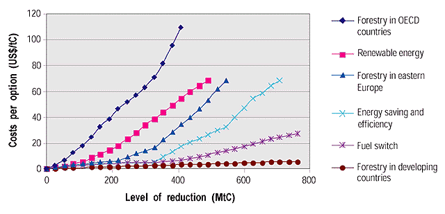 curves of costs (US$/tC, cost of US$28/tC is equivalent to US$100 per tonne of