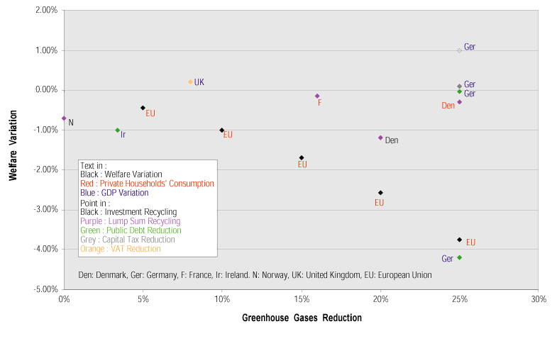 Welfare variation with different recycling policies.