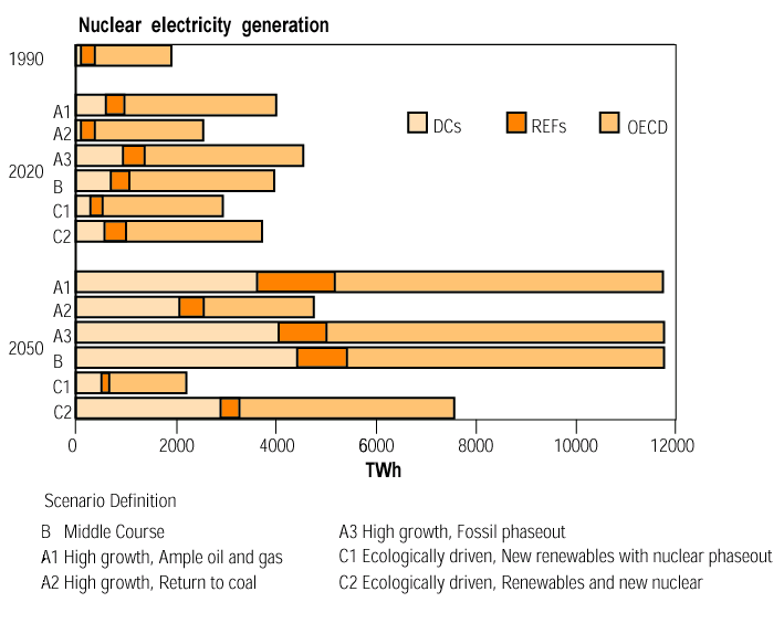 : Projection of world nuclear capacity to 2050 in TWh (Nakicenovic