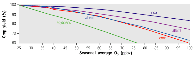 concentrations on agricultural crop yields derived from a Weibull Parametric Fit of NCLAN O