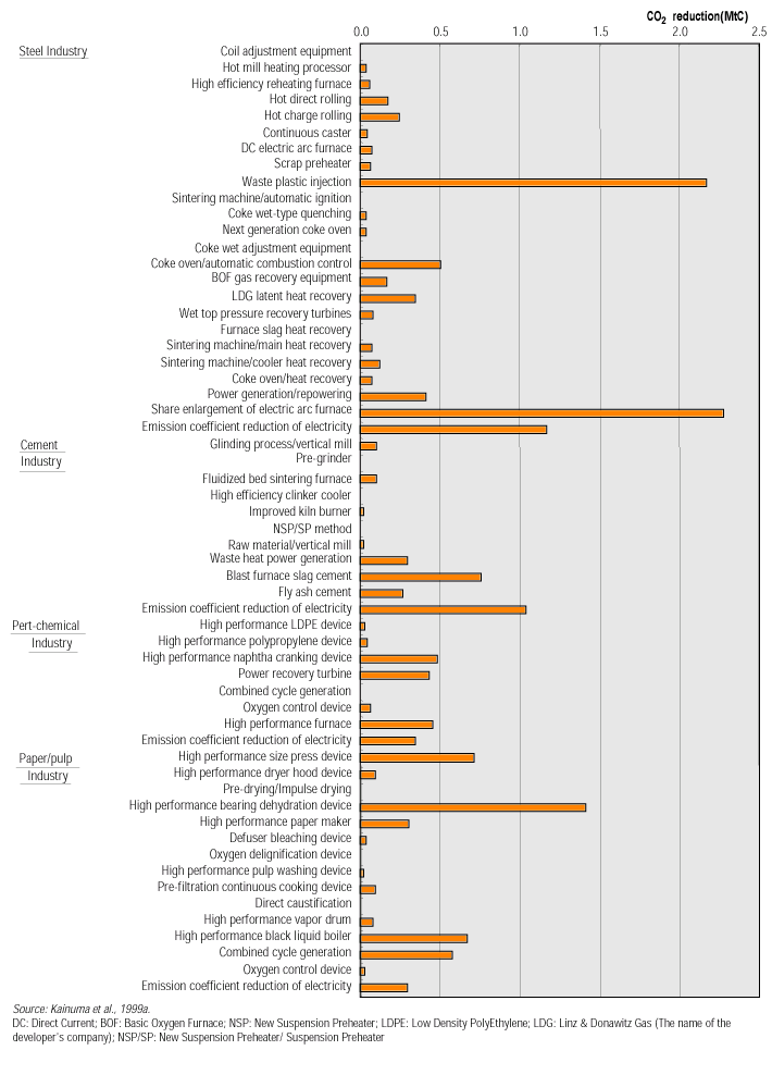 : Contribution to carbon dioxide emission reduction by technology options in Japan in 2010.